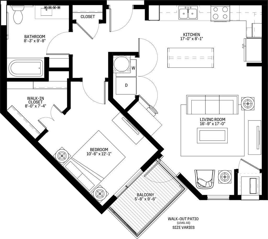 1 Bed, 1 Bath, 806 sq ftModel Gallery