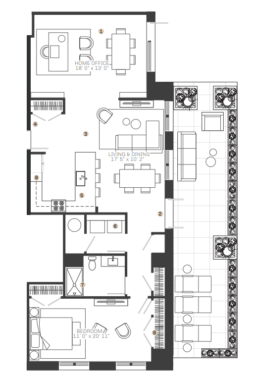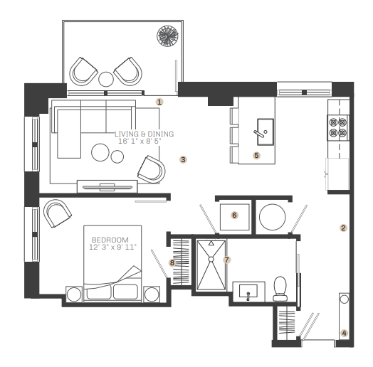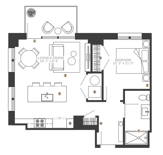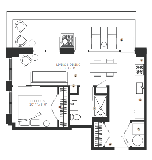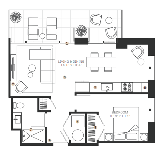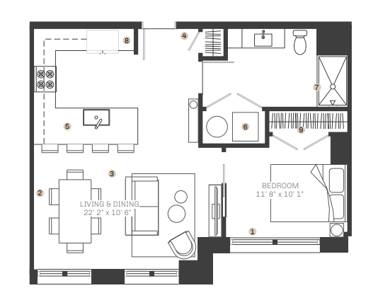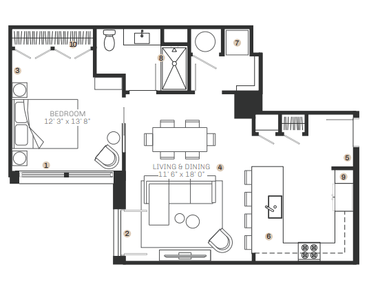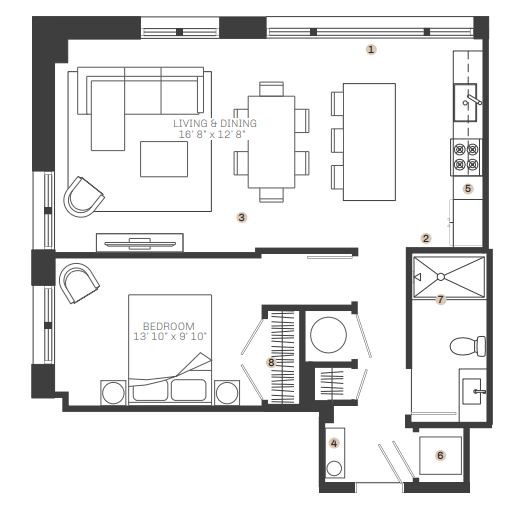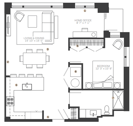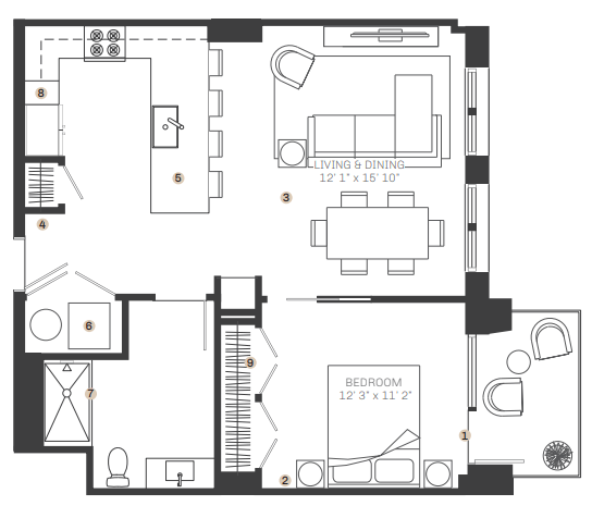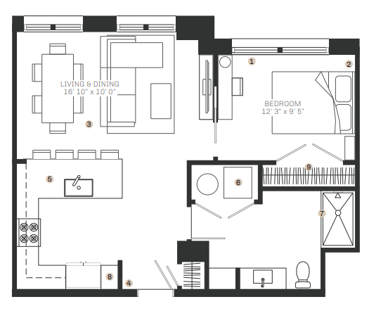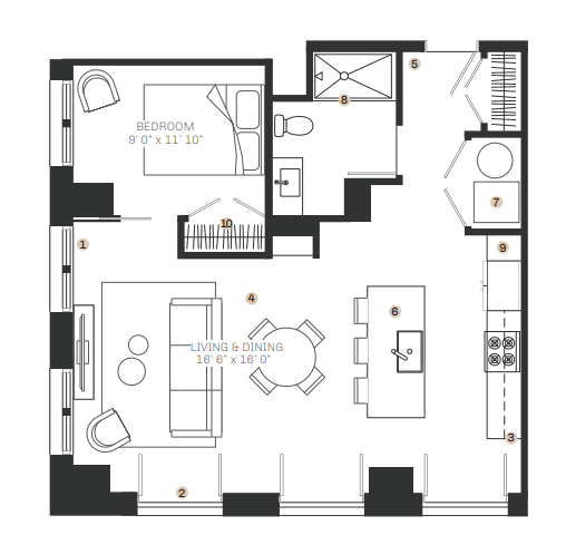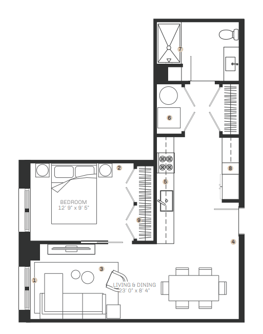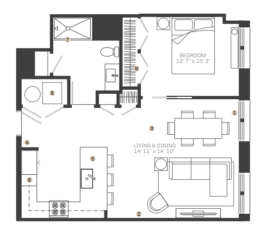 Studio, 1 Bath, 603 sq ftModel Gallery