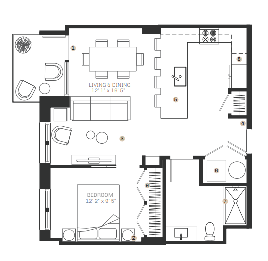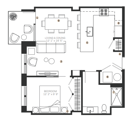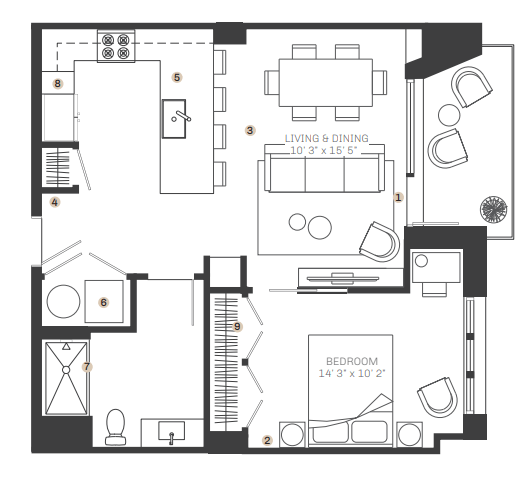 Studio, 1 Bath, 543 sq ftModel Gallery