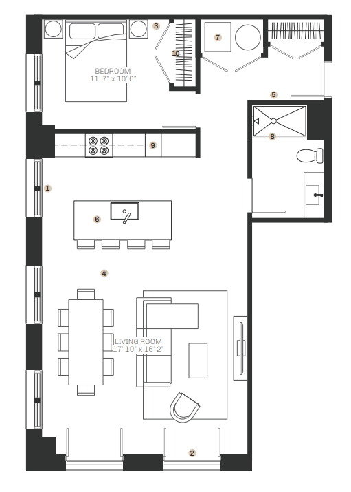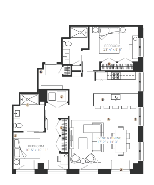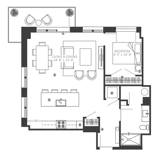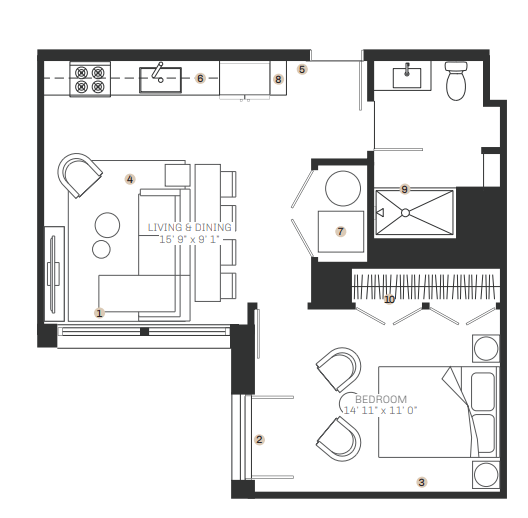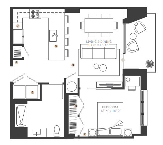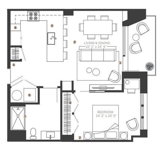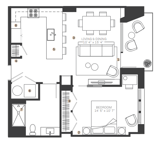 1 Bed, 1 Bath, 625 sq ftModel Gallery