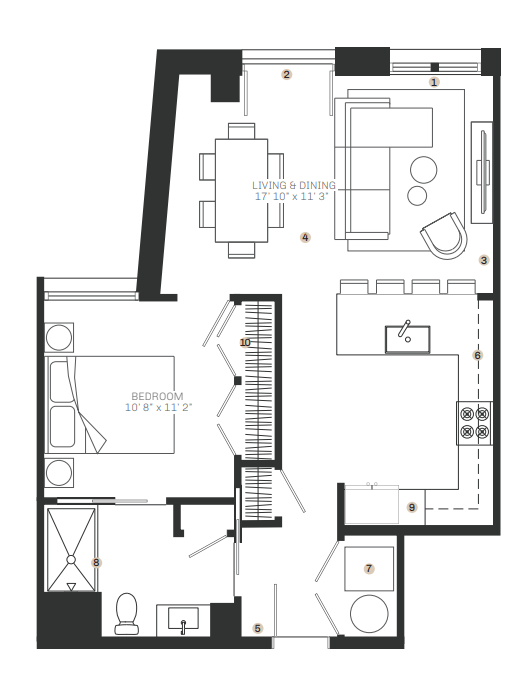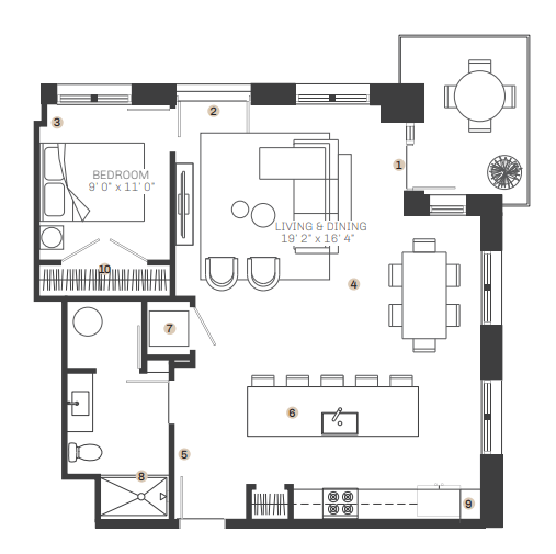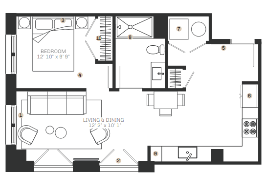 A4 - Floorplan 1 Apartment Unit: 219Apartment Model: A4$1,8461 Bedroom, 1 Bath, 745 sq ftAvailable November 7, 2025Floorplan A10