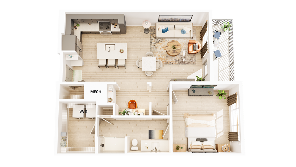 1 Bed, 1 Bath, 801 sq ftAvailable February 14, 2026Model Gallery