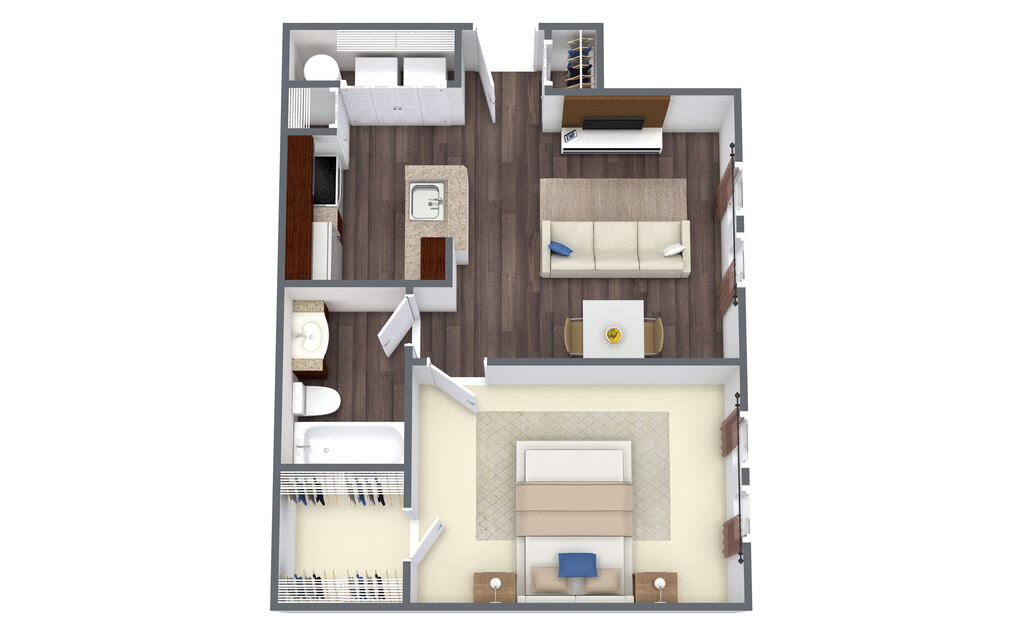 Austin - Floorplan 5 Apartment Unit: 1034Apartment Model: AustinFrom $1,3751 Bedroom, 1 Bath, 588 sq ftAvailable January 7, 20262 Bedrooms