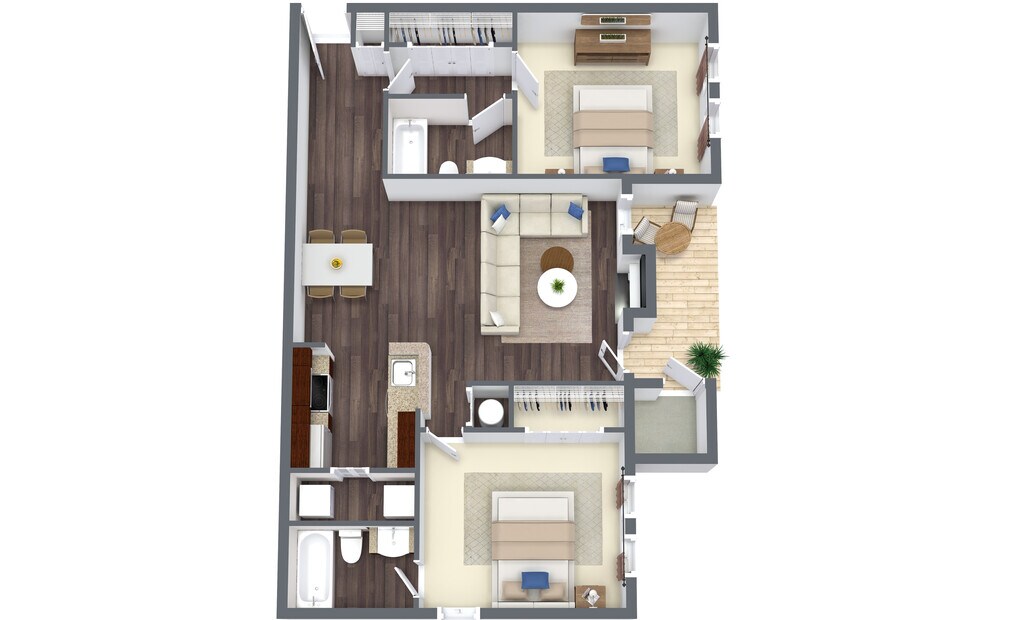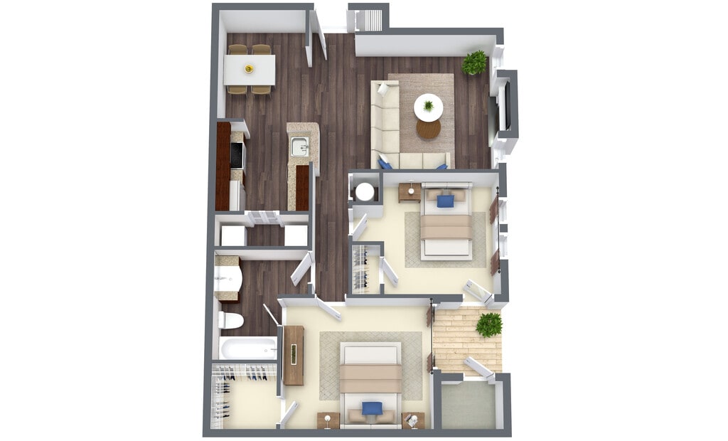 2 Beds, 1 Bath, 850 sq ftAvailable NowModel Gallery