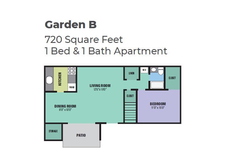Apartment Model: Garden B$1,2501 Bedroom, 1 Bath, 720 sq ftUnavailable![]()