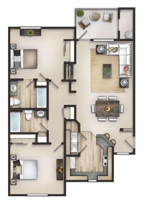 2 Beds, 2 Baths, 1104 sq ftModel Gallery