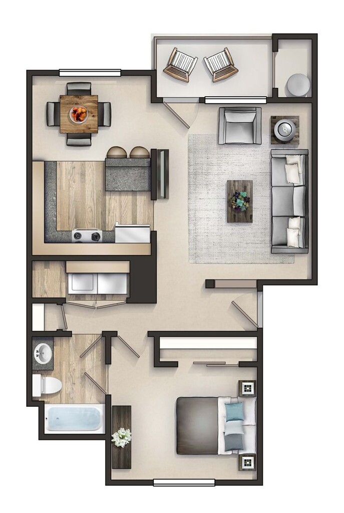 1 Bed, 1 Bath, 800 sq ftAvailable NowModel Gallery