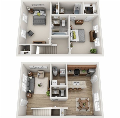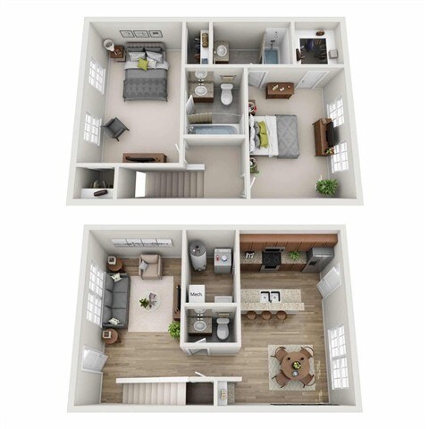 Apartment Model: Two Bedroom TownhomeFrom $1,6952 Bedroom, 2.5 Bath, 1100 sq ftAvailable Now![]()