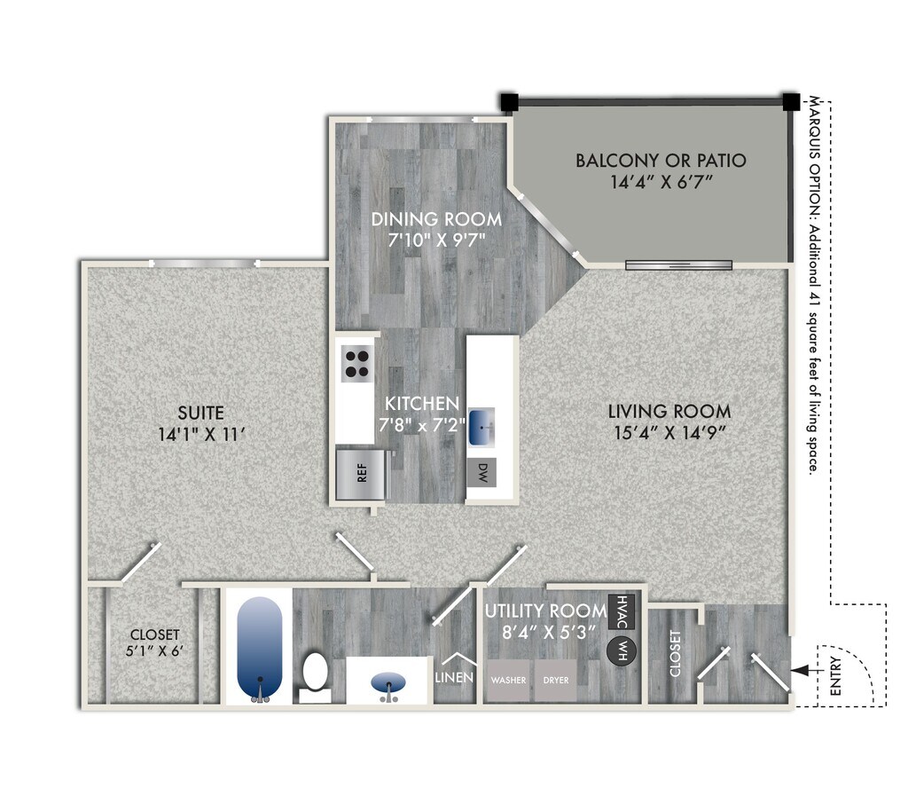 1 Bed, 1 Bath, 722 sq ftModel Gallery