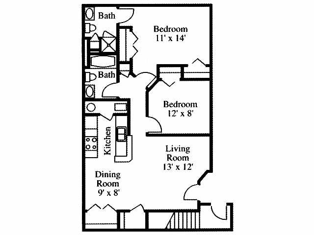 Two Bedroom Two Bath Breezeway - Floorplan 1 Two Bedroom Enclosed