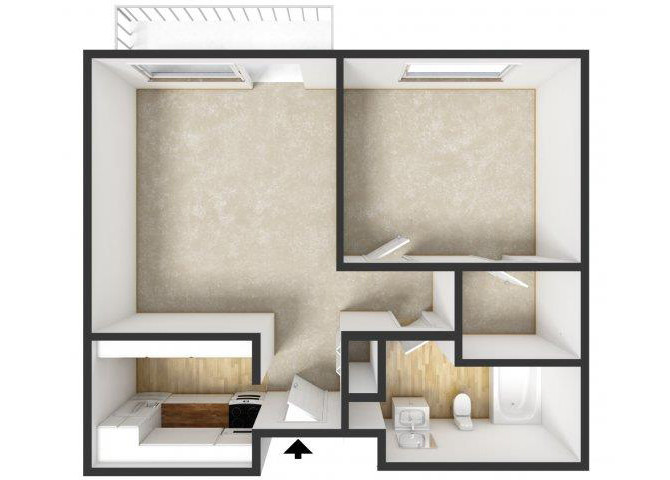 1 Bed, 1 Bath, 584 sq ftModel Gallery