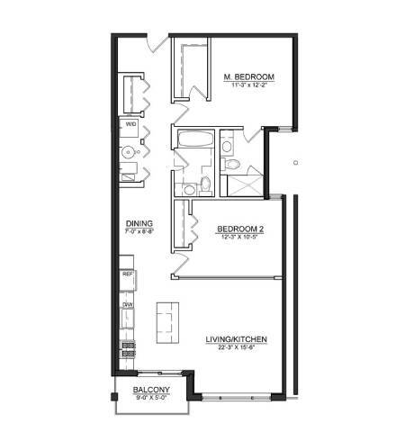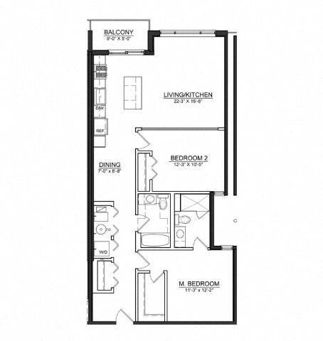2 Bed 2 Bath B5F - Floorplan 1 2 Bed 2 Bath B5