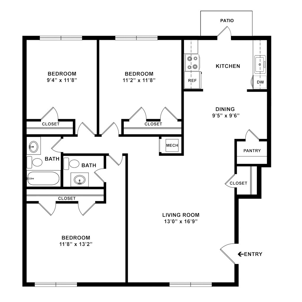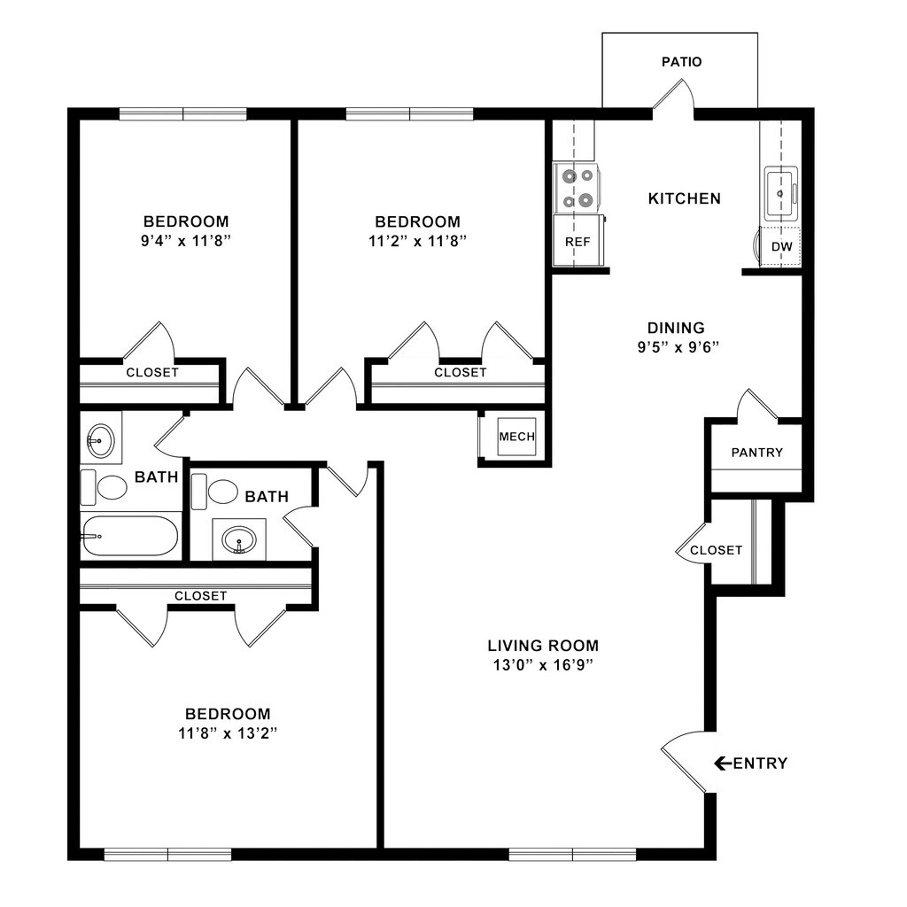 3 Beds, 1.5 Baths, 1200 sq ftAvailable NowModel Gallery