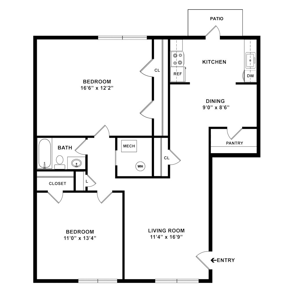 2 Beds, 1 Bath, 1000 sq ftAvailable NowModel Gallery