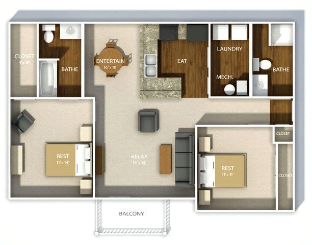2 Beds, 2 Baths, 1053 sq ftAvailable NowModel Gallery