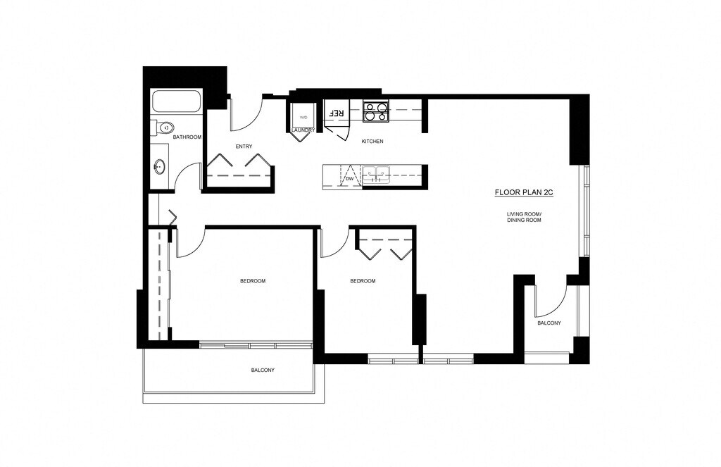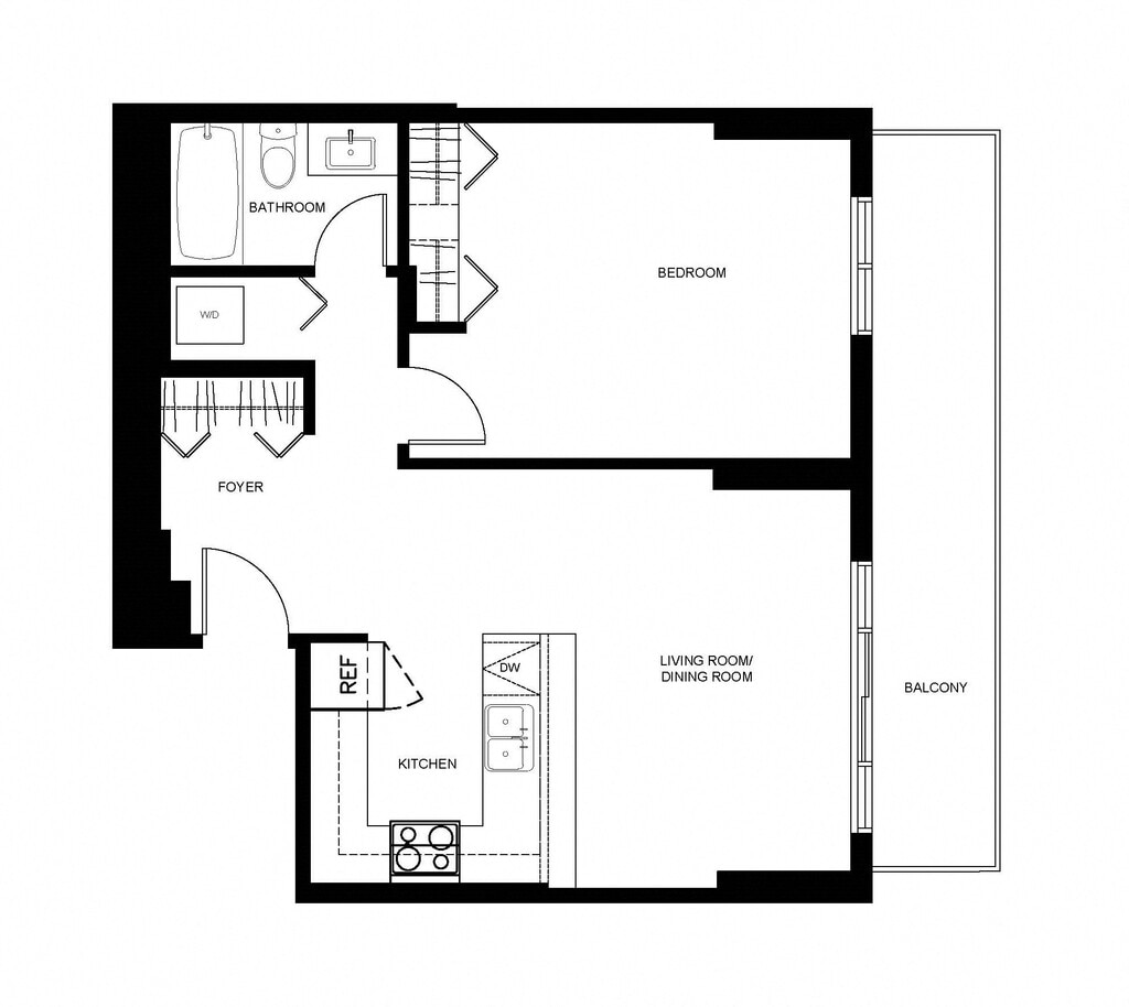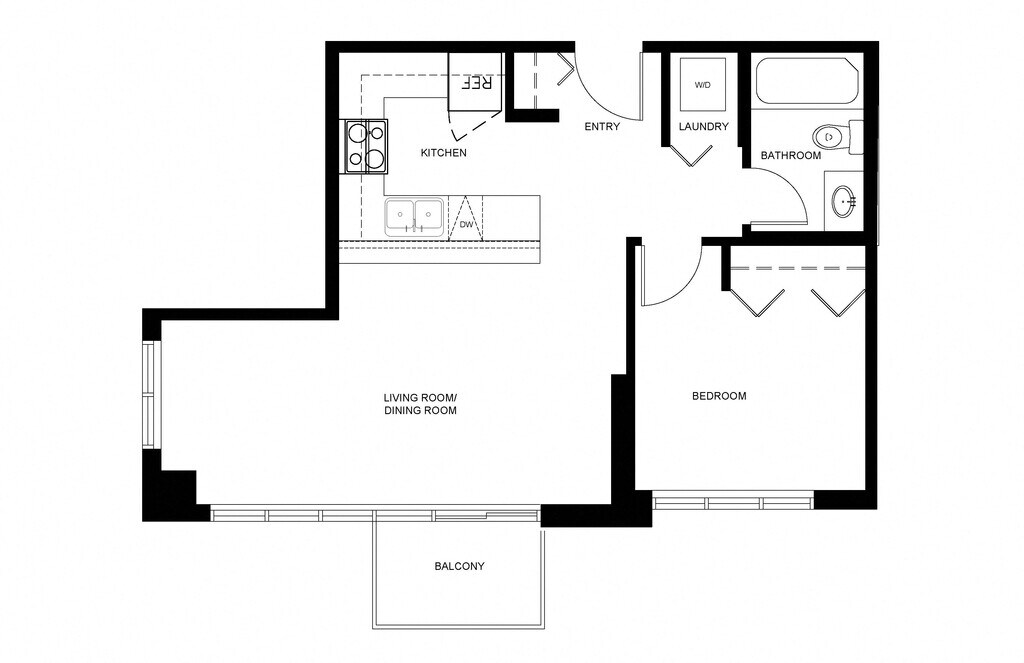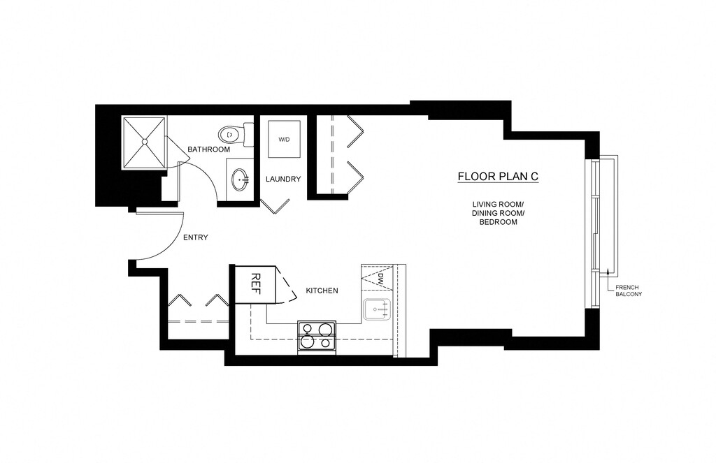 1 Bed 1 Bath K - Floorplan 1 1 Bed 1 Bath C