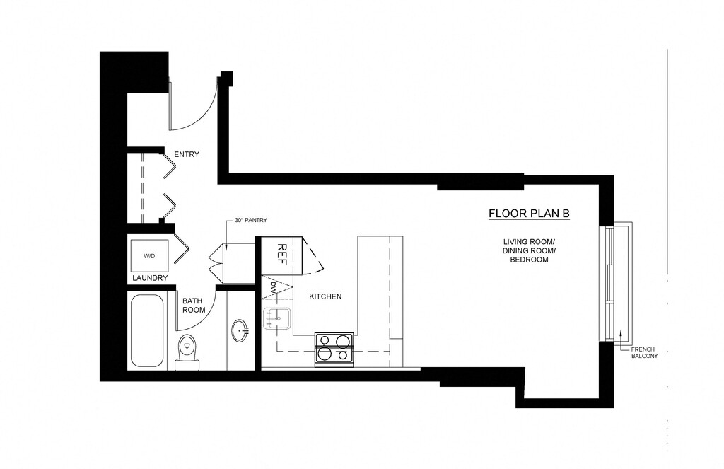 1 Bed 1 Bath E - Floorplan 1 1 Bed 1 Bath F
