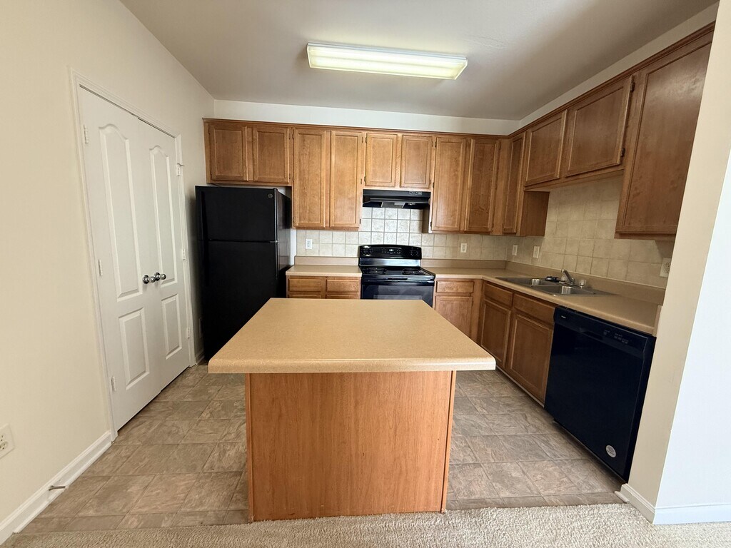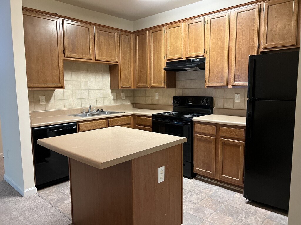 - Black Appliances w/ Tiled Kitchen Backsplash