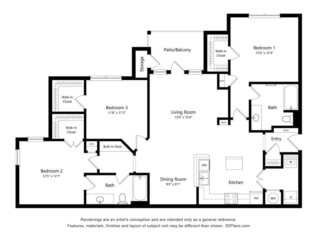 THE BELMONT - Floorplan 1 Floor plans are artist's rendering. All dimensions are approximate. Actual product and specifications may vary in dimension or detail. Not all features are available in every rental home. Please see a representative for details.