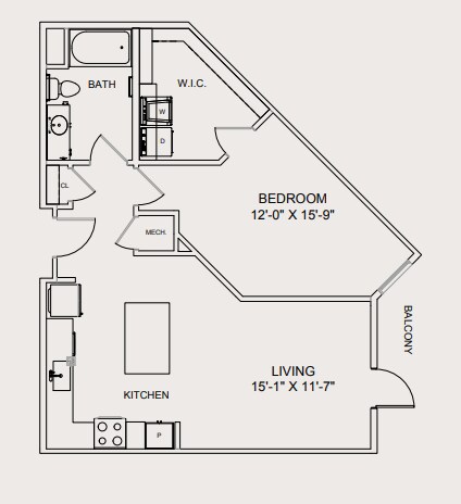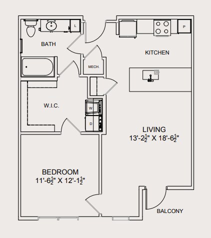One Bedroom - Four on Six (Workforce - 80% AMI) - Floorplan 1 ![]()