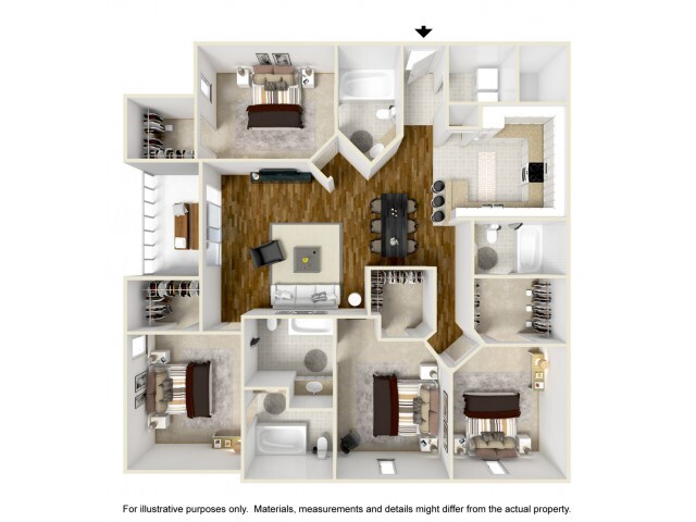 Apartment Model: 4/4 ClassicFrom $7094 Bedroom, 4 Bath, 1800 sq ftAvailable Now![]()