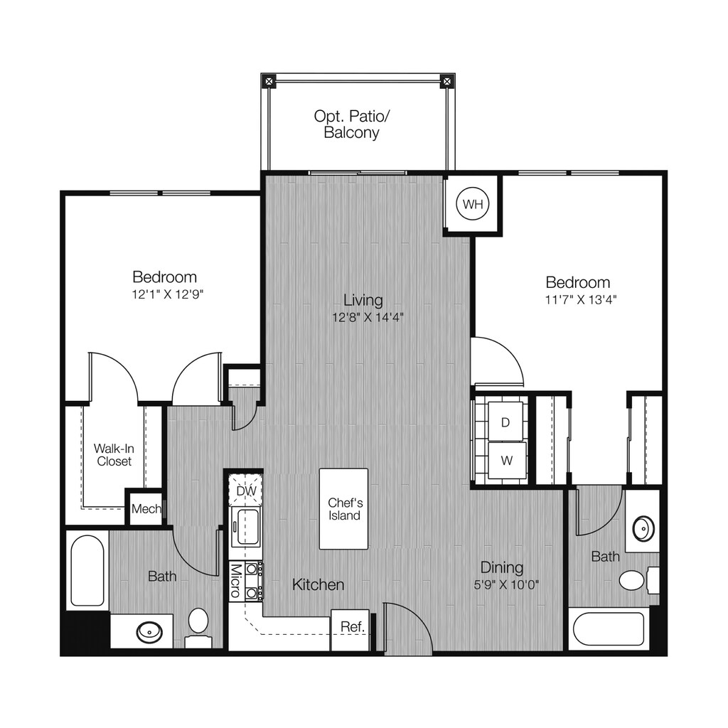 2 Beds, 2 Baths, 1444 sq ftAvailable January 27, 2026Largest 2 BedroomThis is the largest 2 Bedroom at this PropertyModel Gallery