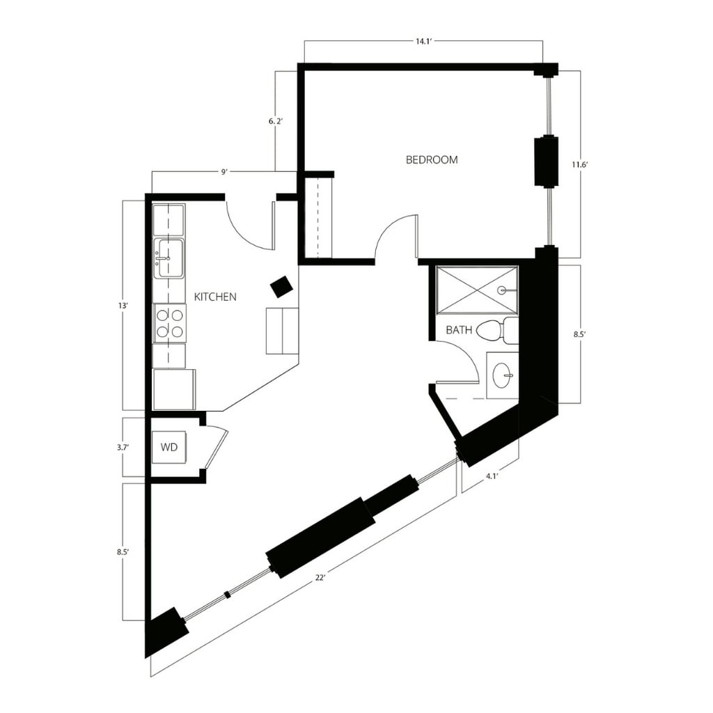 Studio, 1 Bath, 384-685 sq ftAvailable Jan 21Largest StudioThis is the largest Studio at this PropertyModel Gallery