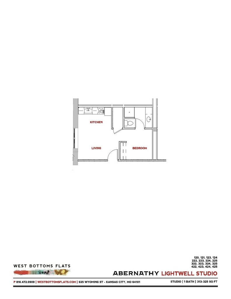 West Bottoms Flats offers Studio to 2 Bedroom apartments starting from $841 and having 282–1,168 sq ft. Here is the current pricing and availability: