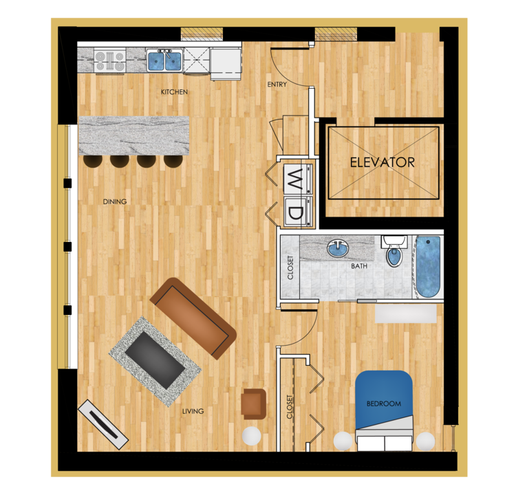 1 Bed, 1 Bath, 480 sq ftAvailable Dec 31Model Gallery