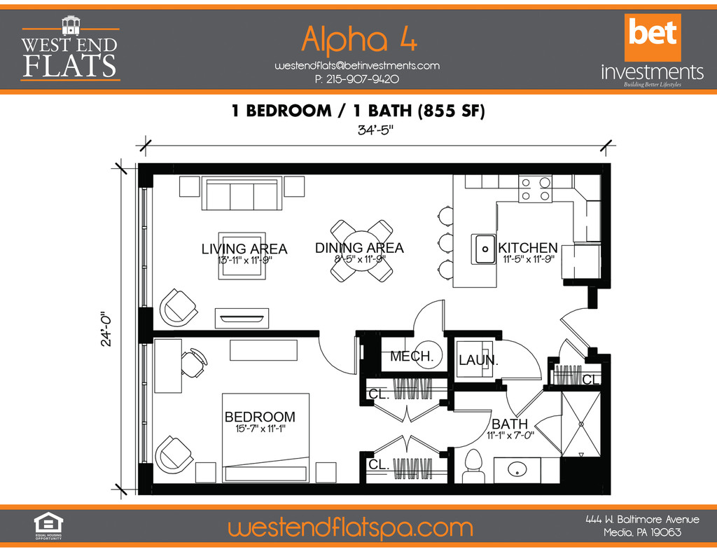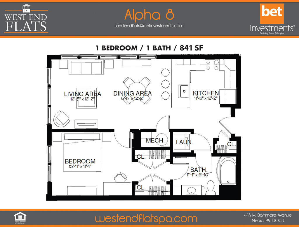 West End Flats is located in the 19063 Zip code of Media, PA. This community is professionally managed by BET Investments Inc.
