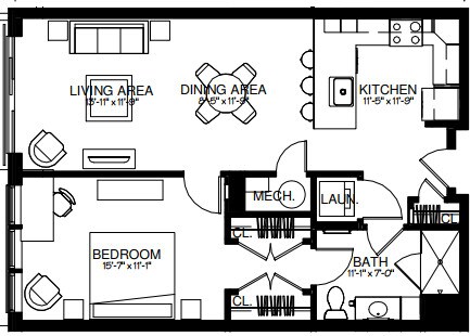 1 Bed, 1 Bath, 855 sq ftAvailable NowModel Gallery