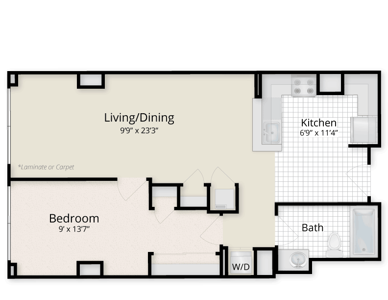 One Bedroom - Floorplan 10 Apartment Unit: 0308Apartment Model: One Bedroom$2,9501 Bedroom, 1 Bath, 682 sq ftAvailable Now![]()