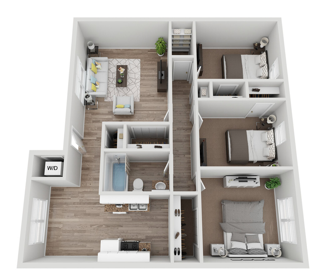 Apartment Model: 3 Bedrooms 1 BathroomFrom $8093 Bedroom, 1 Bath, 950 sq ftAvailable Now![]()