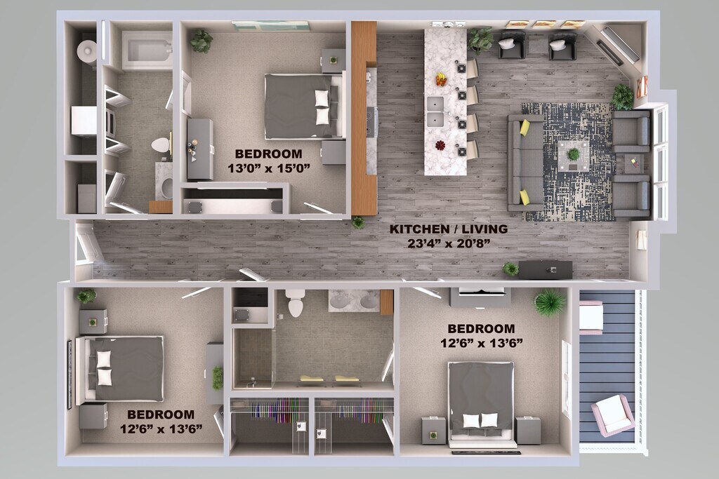 1 Bedroom to 3 Bedroom Apartments at West House at Foxtown + Foxtown Townhomes currently range from $1,805 to $2,695