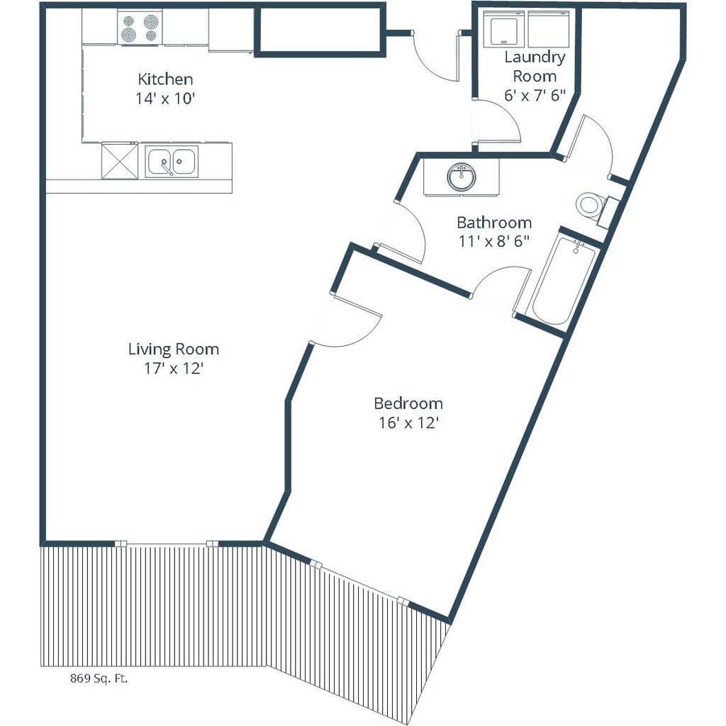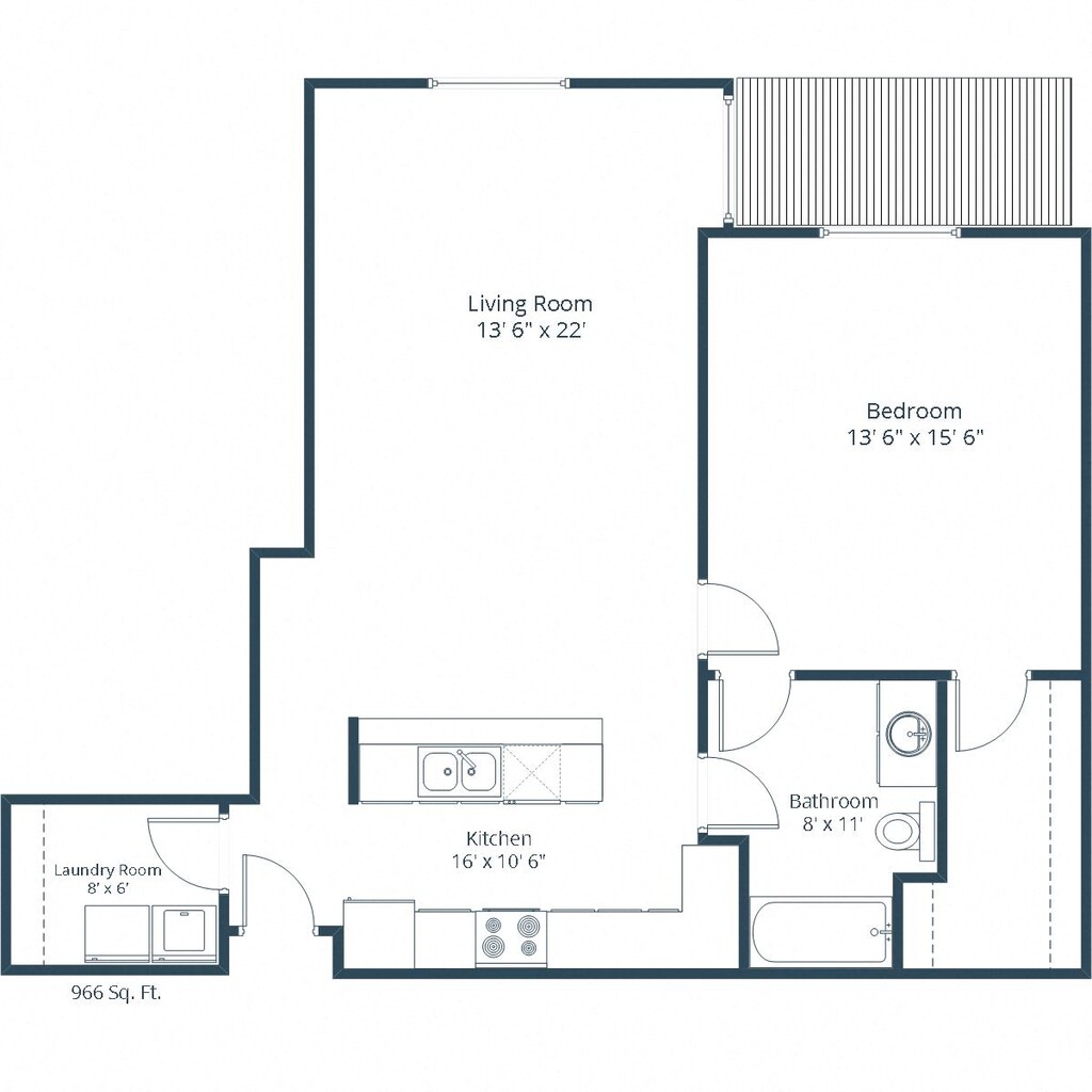 One Bedroom 11B - Floorplan 1 Apartment Unit: 309Apartment Model: One Bedroom 11B$9351 Bedroom, 1 Bath, 966 sq ftAvailable NowOne Bedroom 11A