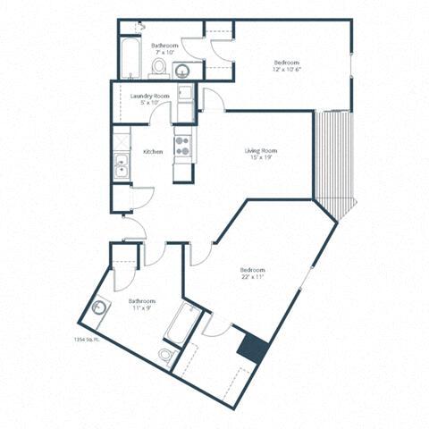 Two Bedroom 22A - Floorplan 1 Apartment Unit: 324Apartment Model: Two Bedroom 22A$1,0902 Bedroom, 2 Bath, 1271 sq ftAvailable NowTwo Bedroom 22B