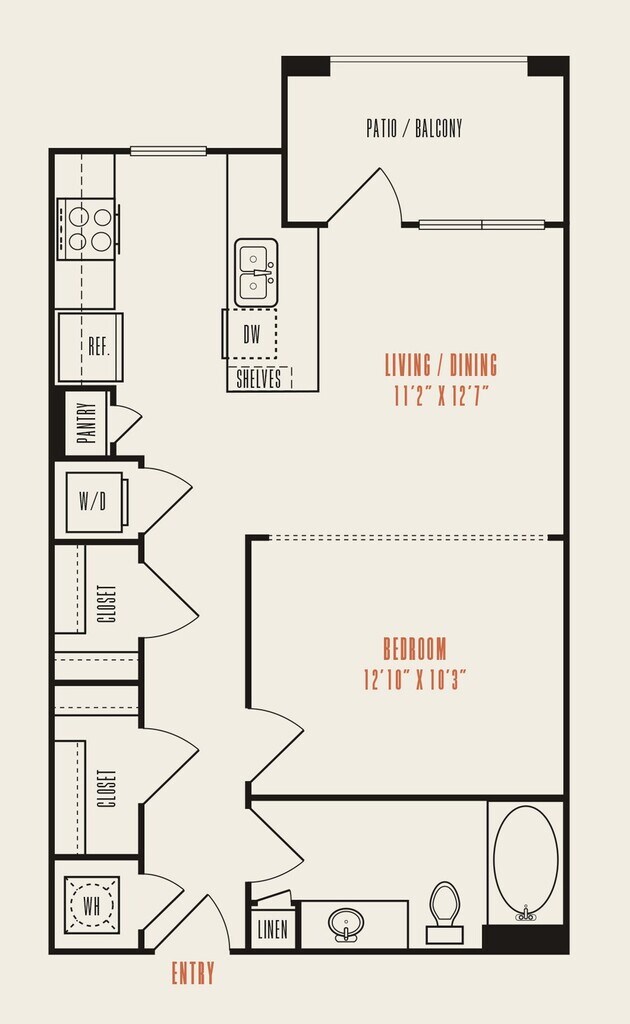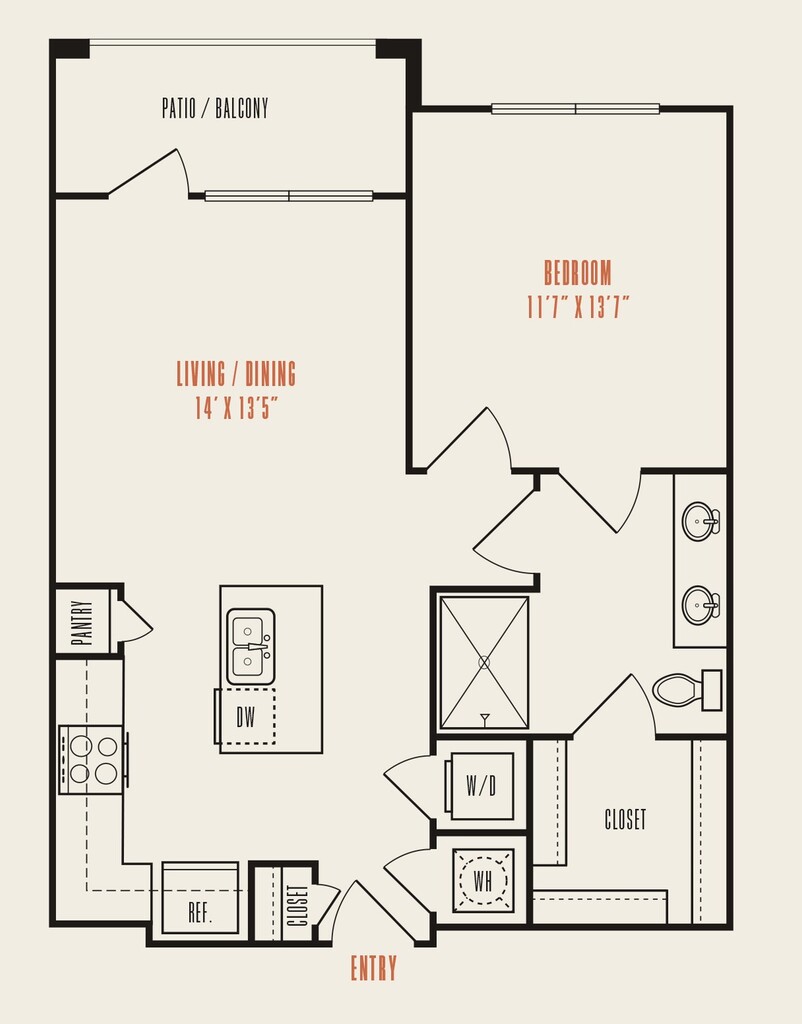 Studio, 1 Bath, 600 sq ftModel Gallery