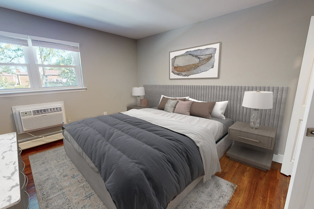 September 24, 2015There's a lot of closet space. There's an air conditioner in both bedrooms and the living room. Hardwood floors, tenants must provide carpets. The kitchen in the two bedroom apartments is about 20 square feet smaller than the kitchen in the one bedrooms, something that bugs my wife. But the kitchen has all new appliances, including a dishwasher. Rent is $1375 but that's the going rate for garden apartments in Monmouth County right now. Rent includes heat & water.Review from Apartments.com