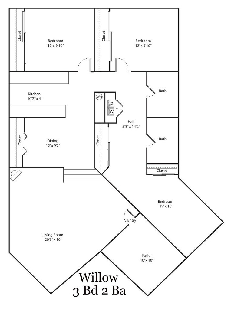 Apartment Model: Willow3 Bedroom, 2 Bath, 1357 sq ftUnavailable![]()