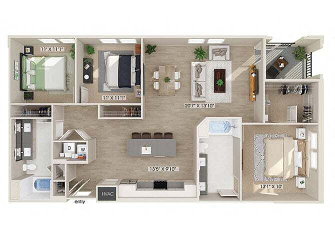 Apartment Model: A3From $3,3201 Bedroom, 1 Bath, 834 sq ftAvailable Now![]()