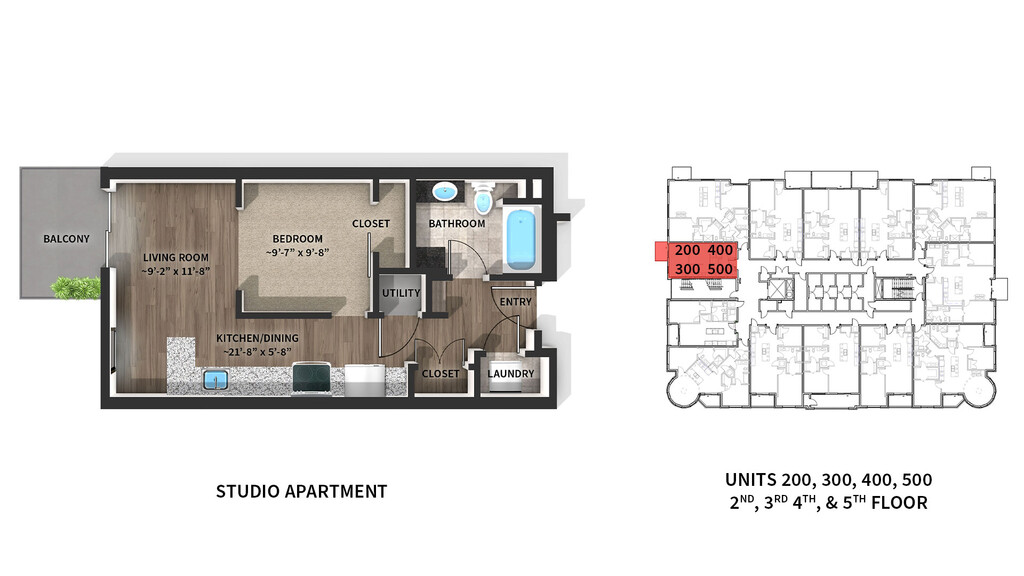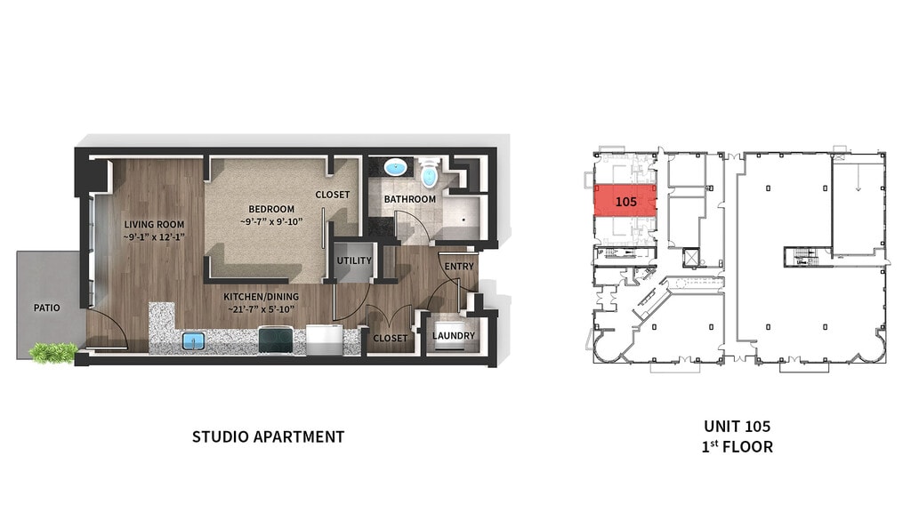 Studio, 1 Bath, 488-494 sq ftModel Gallery
