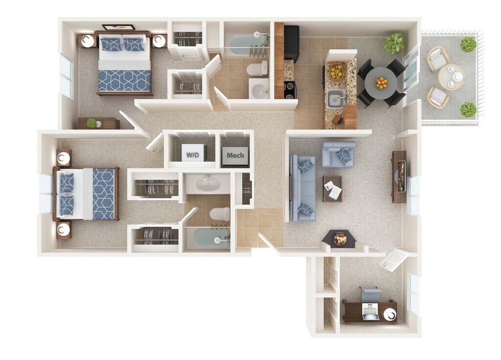 2 Beds, 2 Baths, 1193 sq ftModel Gallery