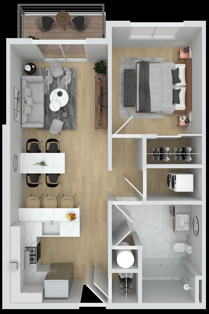 1 Bed, 1 Bath, 700 sq ftPlus FeesAvailable NowModel Gallery