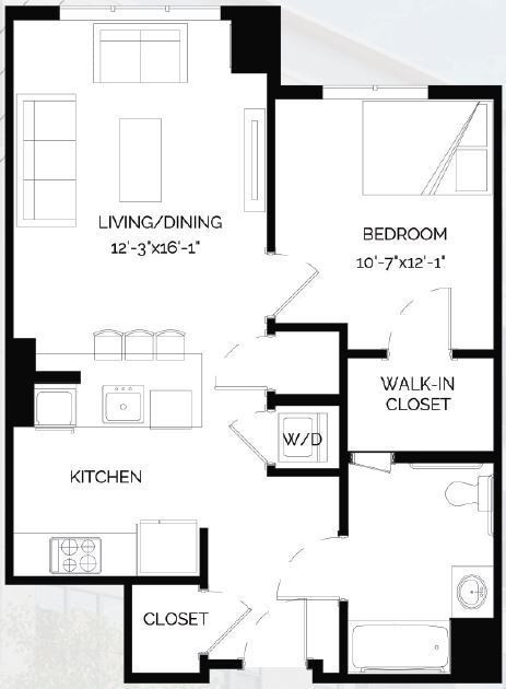 Studio, 1 Bath, 590 sq ftLargest StudioThis is the largest Studio at this PropertyModel Gallery