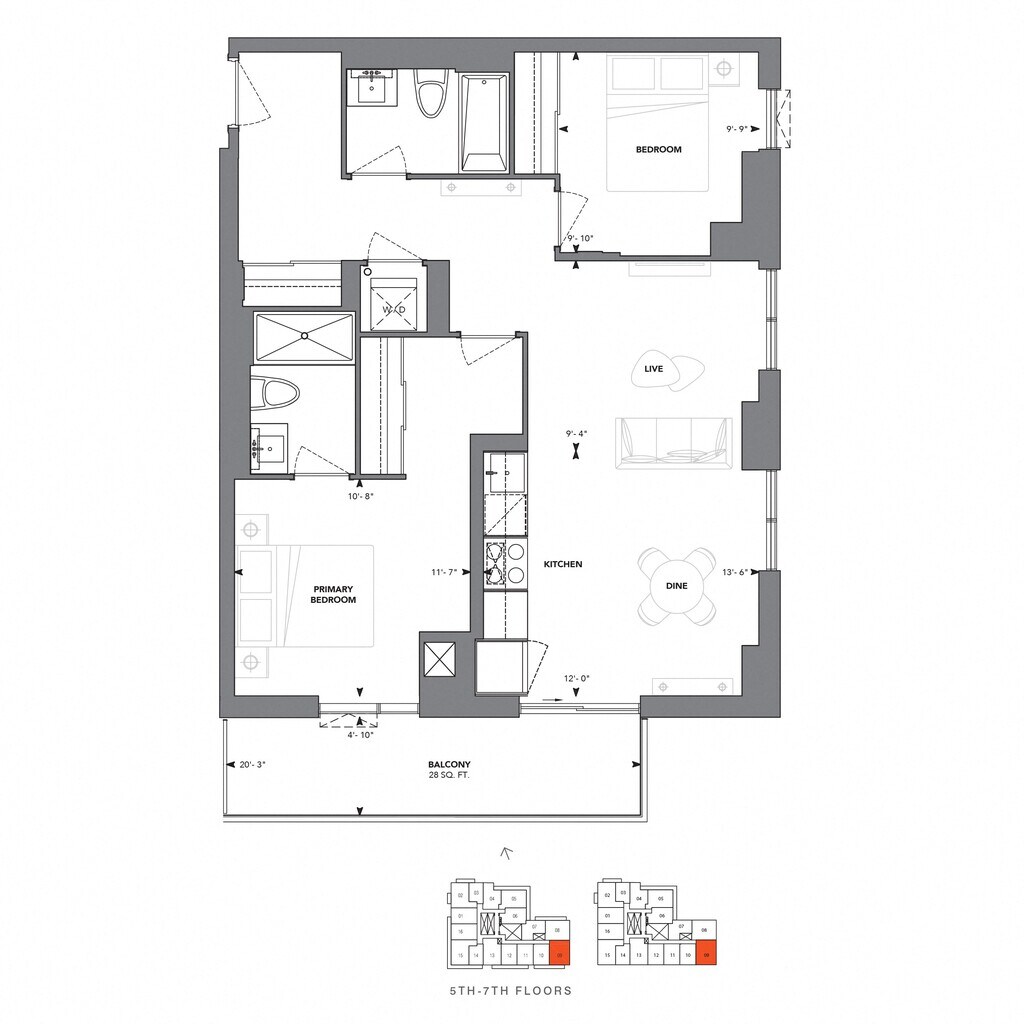 Casson - Floorplan 1 Apartment Unit: 1802Apartment Model: Casson$2,6832 Bedroom, 2 Bath, 784 sq ftAvailable NowLismer V