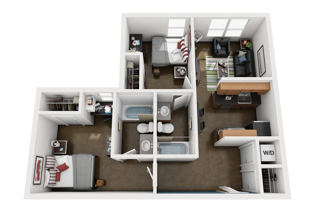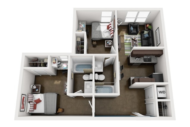 WestMar Student Lofts offers you newly upgraded apartments near GSU. Our fabulous student housing community features luxurious amenities including a giant resort-style swimming pool complete with private cabanas, state-of-the-art gym, full basketball court, 24-hour convenience market, study center, game lounge, free shuttle to several campuses and so much more! With all of these amazing amenities and more get ready to live in luxury at an affordable price with Westmar Student Lofts' student housing in Atlanta! When you aren't enjoying one of the amazing amenities at our student community you will be relaxing with college friends in your luxury apartment. All of our 2, 3, and 4 bedroom student apartments are fully furnished. You will have the option to choose from a standard, luxury, or elite apartment. Each apartment features a private bedroom, private bathroom, washer and dryer, and full kitchen.