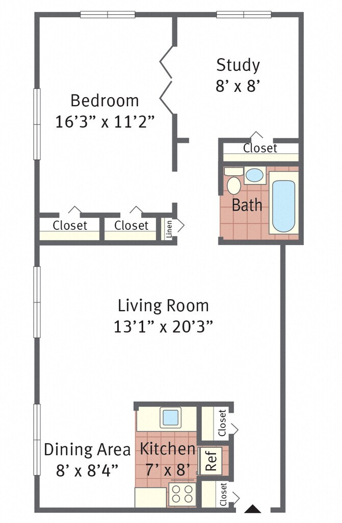 Apartment Model: One Bedroom StudyCall For Rates1 Bedroom, 1 Bath, 745-785 sq ftUnavailable![]()