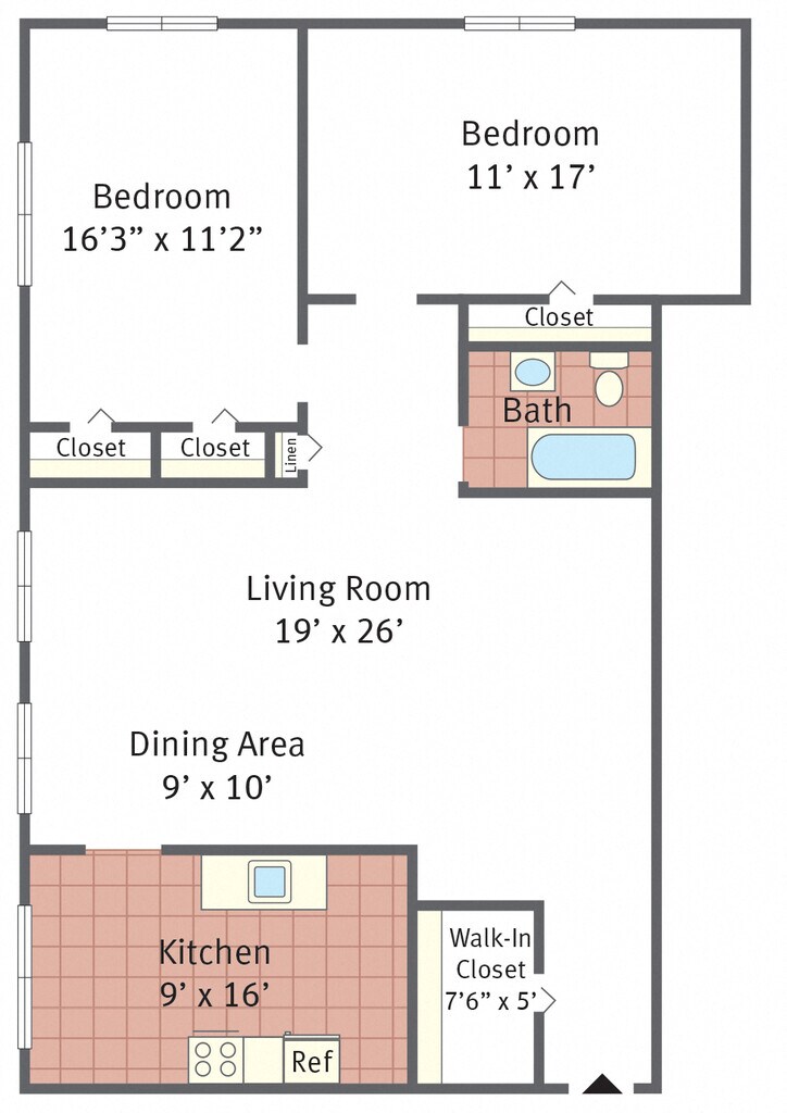 Apartment Model: Two Bedroom LargeCall For Rates2 Bedroom, 1 Bath, 975 sq ftUnavailable![]()