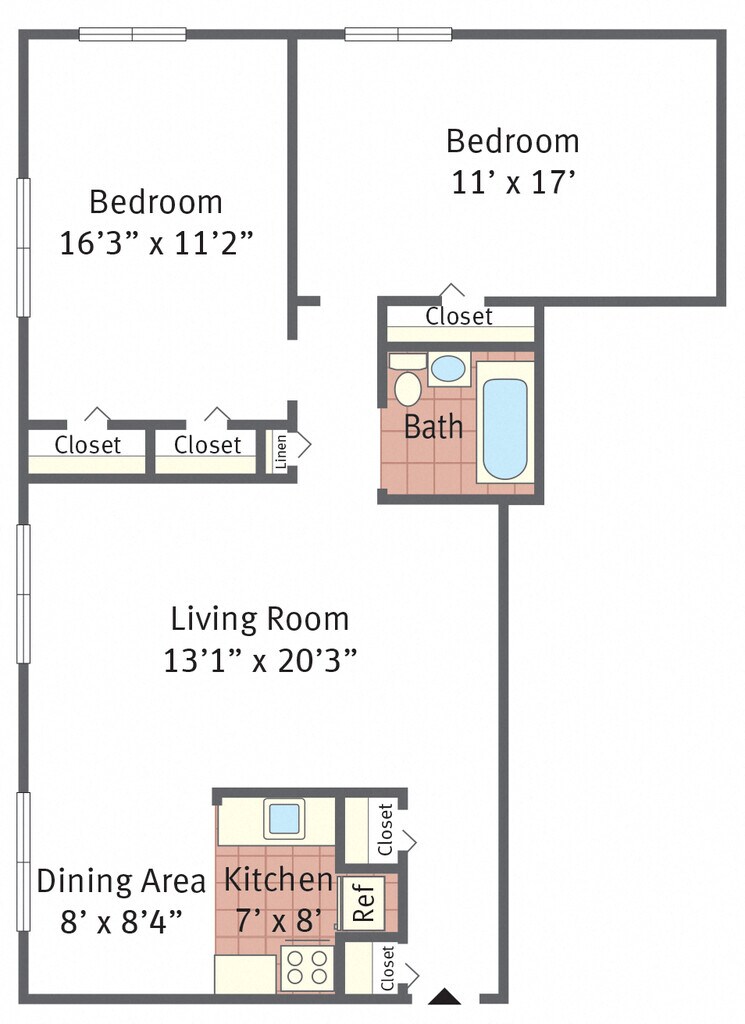 Apartment Model: Two Bedroom StandardCall For Rates2 Bedroom, 1 Bath, 785 sq ftUnavailable![]()