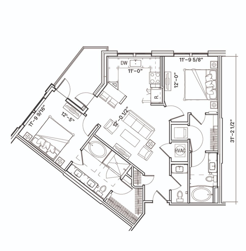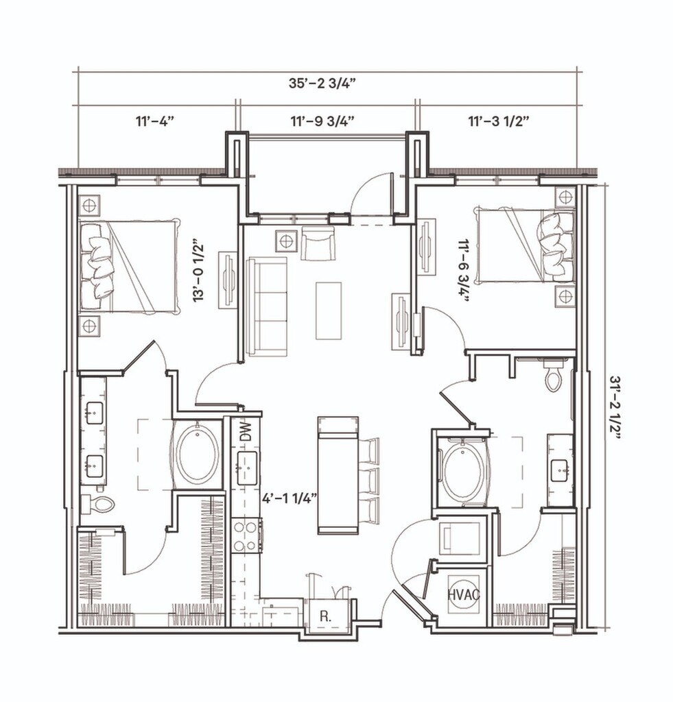 1 Bed, 1 Bath, 987 sq ftAvailable NowLargest 1 BedroomThis is the largest 1 Bedroom at this PropertyModel Gallery
